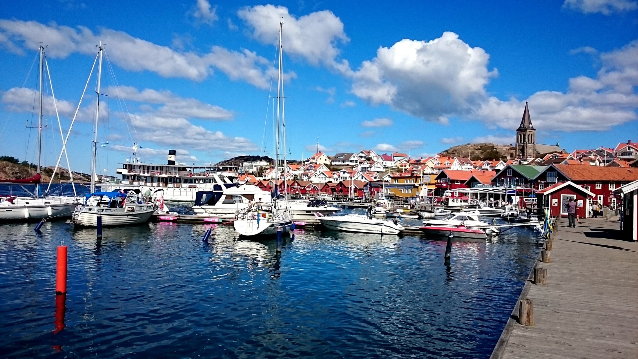Stroll along the tight lanes spreading from the harbor. Classic Swedish red or white wooden houses stand beside cobbled streets. Visit small shops near the water selling local handicrafts, clothing, and keepsakes. Walk the main pier to watch fishing vessels and pleasure boats docked together. Spot the yellow bathhouse on Badholmen island, reached by a stone walkway. Notice the red granite Fjällbacka Church on a hill. It provides another angle over the bay. The central area is small enough to cover completely in one or two hours on foot.